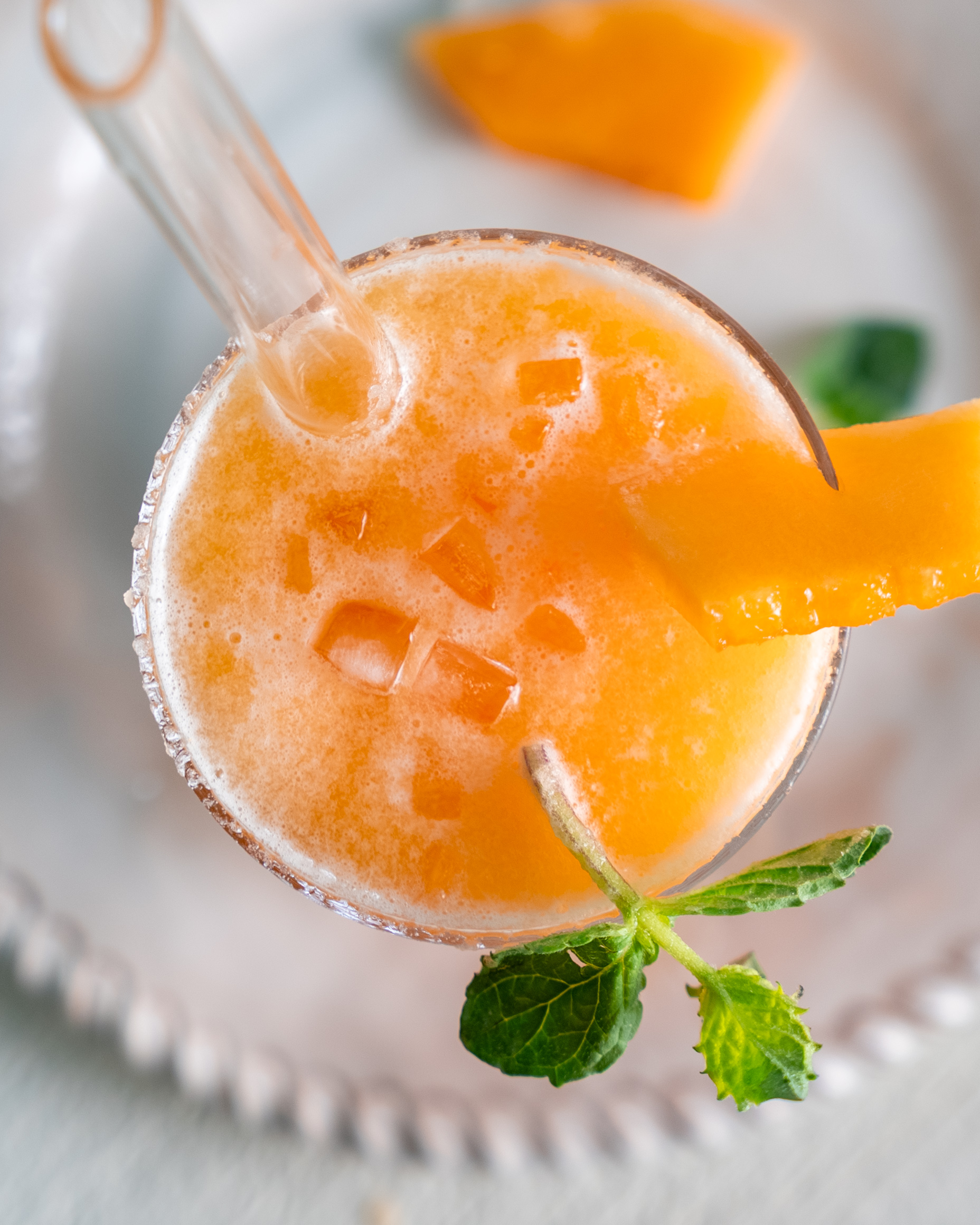 - Ice can be replaced with frozen cantaloupe chunks for a thicker, more intense result.